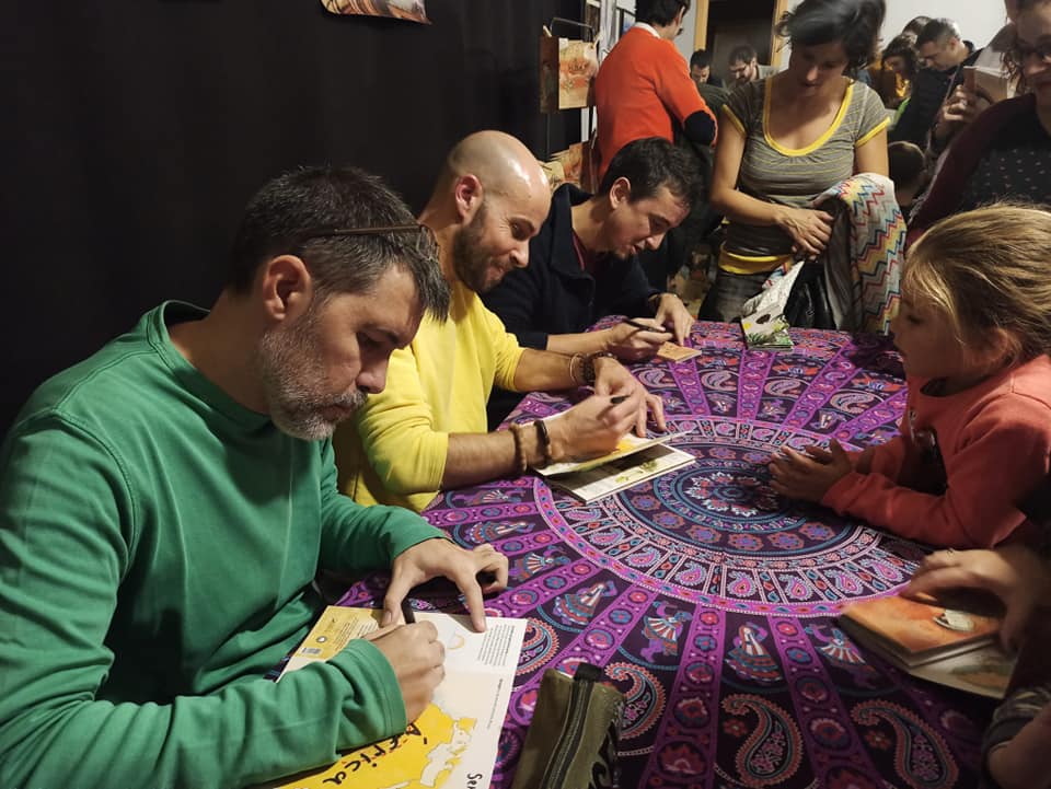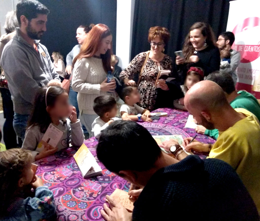 Para finalizar, estuvimos charlando y firmando ejemplares para los asistentes, mientras los más peques disfrutaban de un taller de marionetas de papel con los personajes de las historias de la colección: